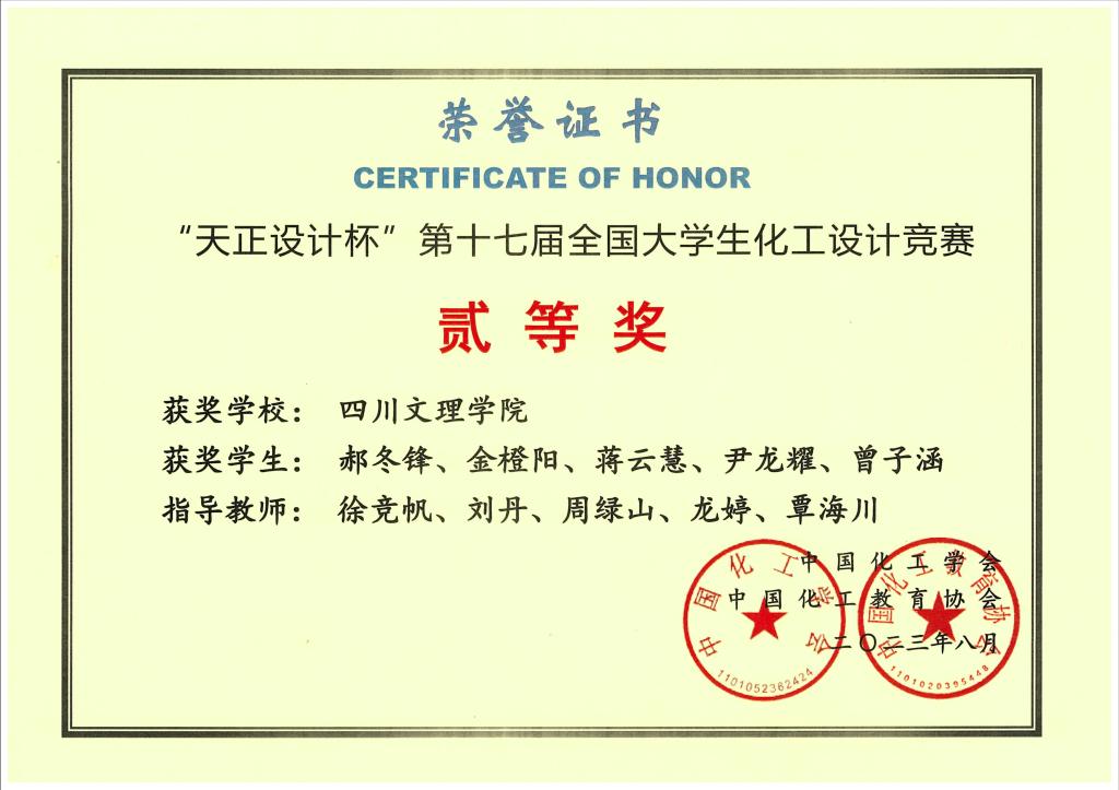 2023年四川省老员工化工设计竞赛 |
