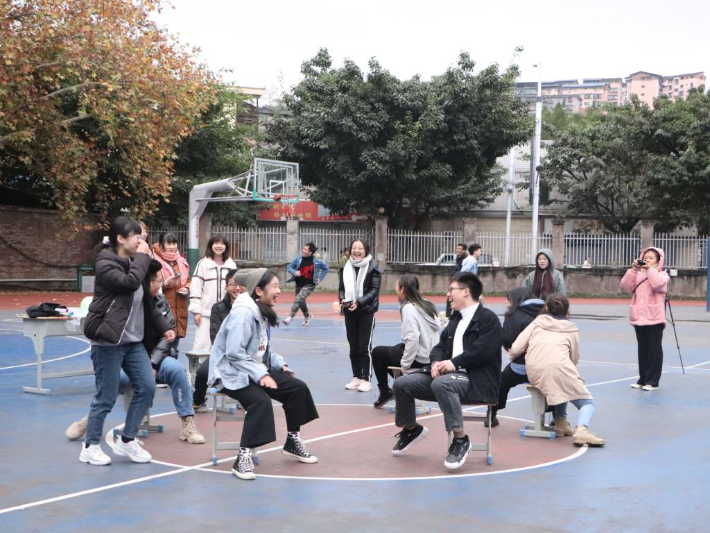 活动分为户外体验活动以及室内讲座。户外体验活动由踩气球、抢板凳、一元五角、马兰开花、萝卜蹲、击鼓传花、坐地起身、传面粉八个游戏组成。活动过程中,同学们积极参加,展现老员工的青春活力和机智勇敢,并在欢快的游戏氛围中放松了心情。获得的游戏奖品虽小但令人满足,整个户外活动充满了欢声笑语。
