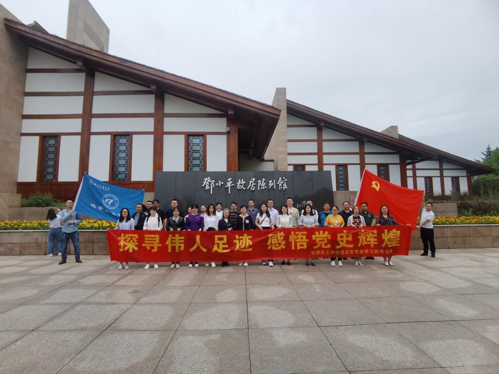 接着,怀着对邓小平同志的崇敬,大家在邓小平故居陈列馆进行了集体合影,然后进入邓小平故居陈列馆。老师们仔细参观,认真聆听讲解。陈列馆以“我是中国人民的儿子”为主题,全景式地展现了邓小平和中国共产党人为国家富强、人民幸福而不懈奋斗的光辉历程。陈列馆共收集了有关邓小平同志的408幅图片、170件文物、200多件档案文献资料,通过声、光、电等高科技手段,让各位老师重温了邓小平同志为中国革命、建设和改革事业不懈奋斗的光辉一生。参观后,化工制药支部、化学应化支部、员工党支部分别开展了学习交流活动。
