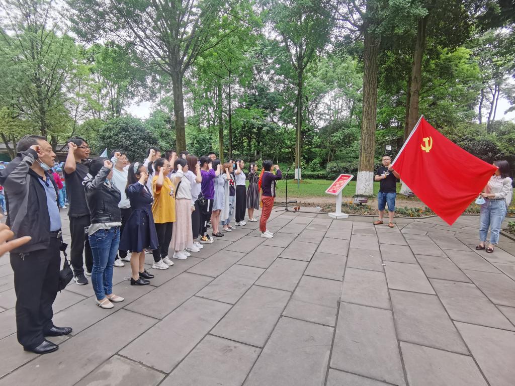 5月22日下午老师们踏上了前往邓小平故里的征途。23日一早,老师们走进了邓小平纪念园区,大家肃然起敬,站立在邓小平铜像前,在公司党总支书记朱朝菊同志领誓下,所有党员庄严伫立,重温入党誓词,铮铮誓言担使命,声声名字表决心。