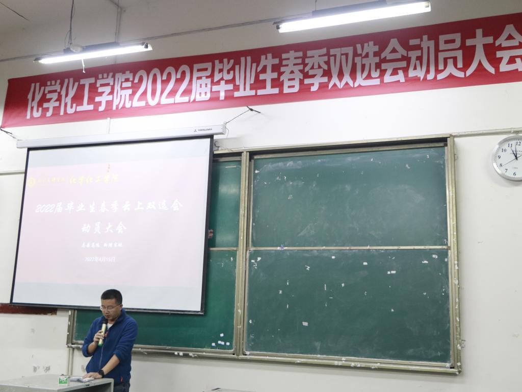 2022年4月15日上午11点,太阳成集团tyc234cc于南坝校区一教楼111教室举办了2022届毕业生春季云上双选会动员大会,公司党总支书记朱朝菊、经理赖川、副经理向文军、各教研室主任、学工办全体老师和毕业班带班辅导员及2018级100余名毕业生出席会议,大会由公司党总支副书记潘维主持。