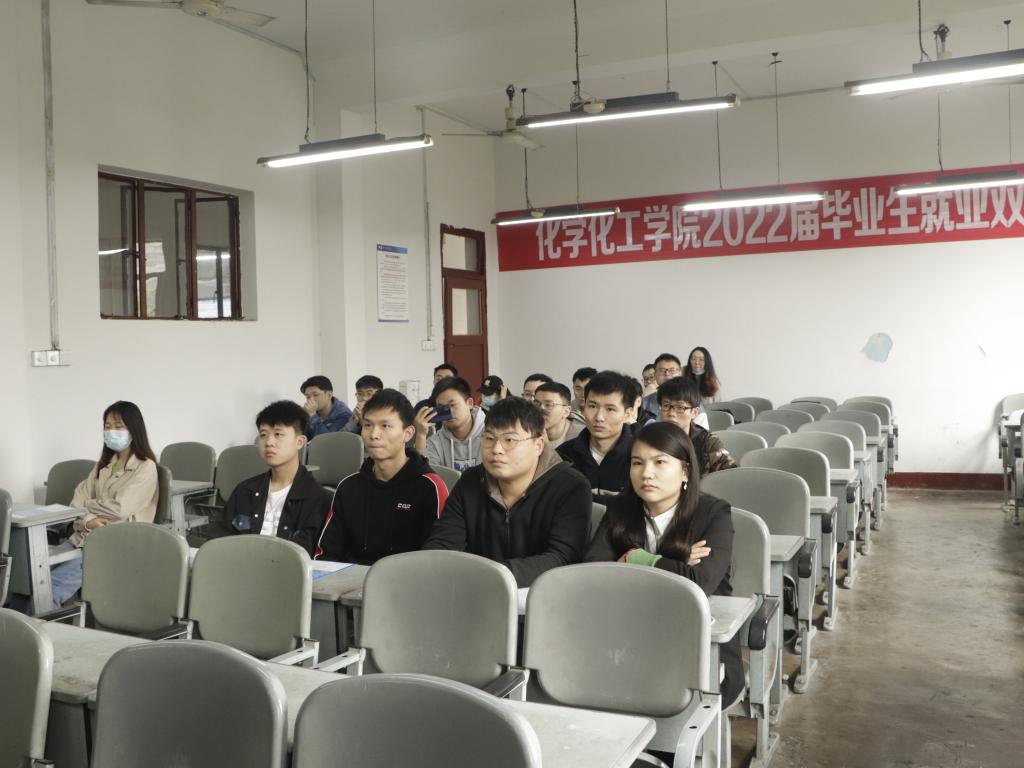 合盛硅业负责人主要从以下四个方面介绍了公司的情况。第一,产品-硅制品,工艺复杂的有机硅在未来前景无限,且与化工专业息息相关,能让公司学子学以致用,更快更好地适应工作。第二,人才培养计划,此时公司急需年轻力量的注入,实习生从入职集训到转正的工作期间能对公司各个方面有一定了解,从而实现“我们”与车间岗位的双向选择。第三,公司福利,实习生入职就有社保,转正后有相应的五险一金。专业培训、公寓宿舍、节日福利一应俱全。第四,对管理岗位的人才招聘,尤其在我们化工专业急需化工管培生。合盛硅业等单位表达了对化工专业人才的需求,无论是内部福利、工作环境,还是岗位提拔、公司前景,都具有十足吸引力。