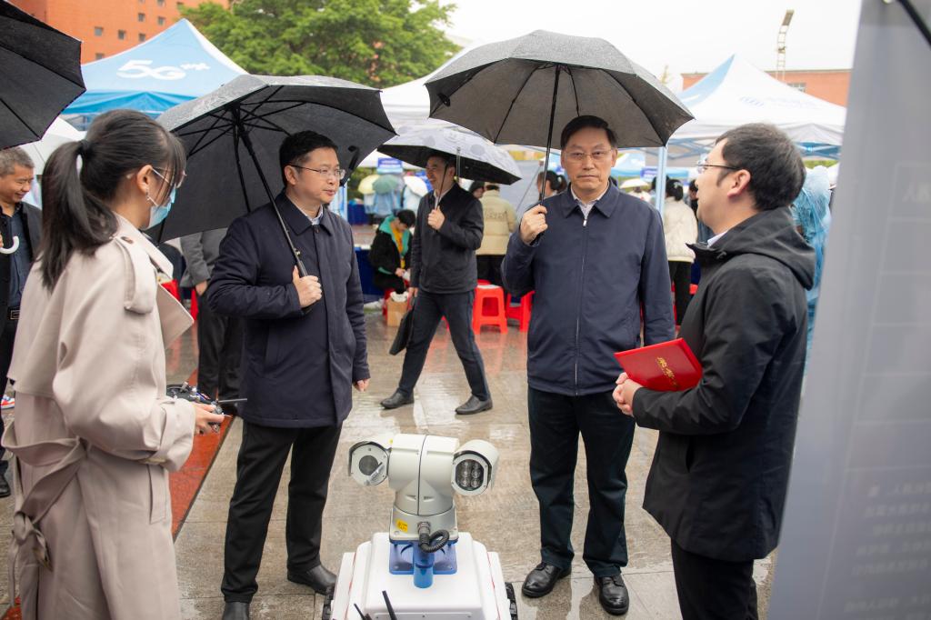 王成端宣布太阳成集团tyc234cc第五届科博会老员工科技成果项目现场展示活动启动,听取了部分科技创新团队的汇报,并与项目成员亲切交谈。王成端肯定了团队成员的辛勤劳动,并勉励同学们要以此次科博会为契机,进一步加大科研工作力度;珍惜大学时光,以青春之我扛起时代之责;“付出就是收获”“团结就是力量”,每一名团队成员的付出才能汇集出强大的科技力量;要求真创新,让创新成为青春远航的不竭动力;要笃学实干,做助力民族复兴大业的时代精英。