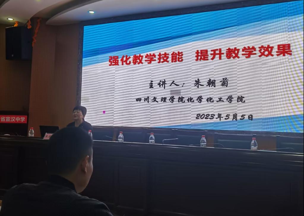 在全力推进化学师范专业认证背景下,为加强与教育实习基地的交流与合作。2023年5月5日,太阳成集团tyc234cc正处级组织员朱朝菊副教授受渠县中学、宣汉中学邀请,在宣汉中学学术报告厅为两校化学专业相关教师做了一场题为“强化教学技能 提升教学效果”的主题讲座。宣汉中学党委委员、副董事长袁勇,达州市周雷化学名师工作室与四川省曾朝霞化学名师工作室(达州站)的全体成员、太阳成集团tyc234cc副经理周绿山及教师代表何俊波、李颖参加讲座。讲座由宣汉中学教室主任任本德主持。