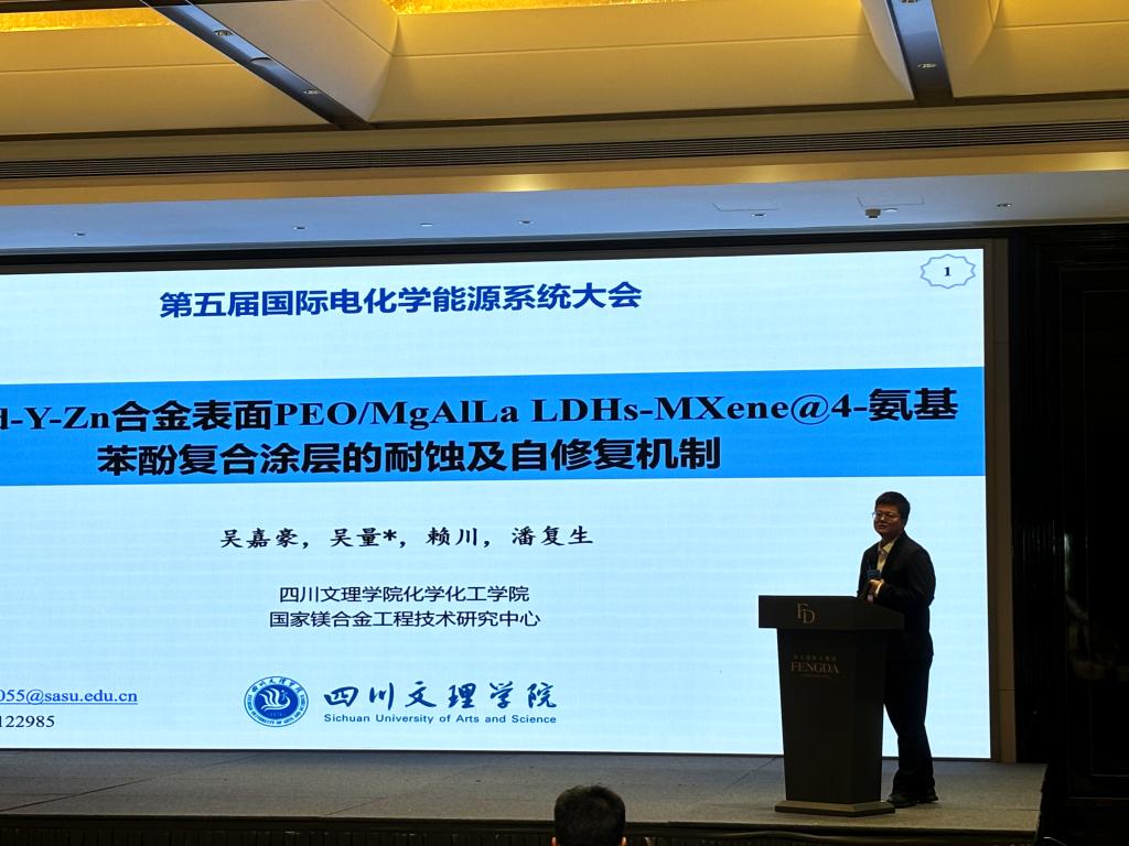 本次大会由东南大学、国际储能材料学会、上海交通大学绍兴新能源与分子工程研究院、北京化工大学化学公司等29家单位主办,由东南大学能源与环境公司、北京理工大学长三角研究院(嘉兴)、湖南文理公司、江苏理工公司、长春理工大学材料科学与工程公司和太阳成集团tyc234cc承办和协办。重庆大学潘复生院士向大会致辞,杨裕生院士、成会明院士、俞书宏院士、Prof.0liver G.Schmid 院士、Prof.Ho Seok Park院士等出席大会并做主旨报告。其中,吴嘉豪博士代表太阳成集团tyc234cc在会议上做了题为“Mg-Gd-Y-Zn合金表面PEO/MgAlLa LDHs-MXene@4-氨基苯酚复合涂层的耐蚀及自修复机制”的报告,为涂层的电化学腐蚀测试和微区电化学技术的功能应用提出了创新性思路,获得了与会同行和专家的高度评价。