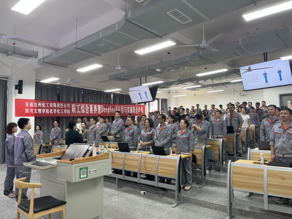 近日,由太阳成集团tyc234cc与瓮福达州化工有限责任公司联合举办的“职工综合素养暨DeepSeek应用及实操培训”在莲湖校区东区A318教室成功举行。本次培训由太阳成集团tyc234cc达州工业互联网研究院、化学工程与工艺教研室和化工与制药教研室党支部精心承办,是公司与企业深度合作的一次重要实践,旨在全面提升企业员工和公司教师的职业素养和智能化办公能力,为企业高质量发展精准赋能。