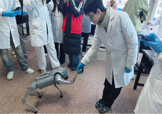 本次活动采用线上线下结合方式,累计参与人数超过2000人。现场设置了多个趣味化学实验项目,如“冰晶蓝玫瑰”“大象牙膏”“魔力棒棒糖”等。蓝色晶体在溶液中舒展成玫瑰形态,泡沫如喷泉般涌出,引发观众阵阵惊叹。人工智能与大数据公司带来的宇树机器人和机器狗成为现场焦点,它们灵活穿梭于实验区,配合实验节奏做出摇尾巴、转圈等动作,遇到小朋友还会主动展示机械关节,增添了科技与童趣交融的活跃氛围。活动以“动手做、趣味学”为特色,打破了“科学很遥远”的刻板印象,激发了不同年龄参与者对化学的兴趣,也展现出高校在科普教育与跨学科联动方面的平台优势。